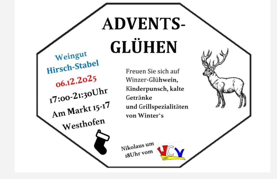 Um 18 Uhr kommt der Nikolaus vom Westhofener Carnevalverein, für Essen sorgt der Caterer Winters Grill, frische Waffeln werden vom Förderverein Apfelbäumchen der KiTa Seebachfrösche in Westhofen gebacken und für leckeren Winzer-Glühwein, Traubenpunsch und kalte Getränke sorgen wir.