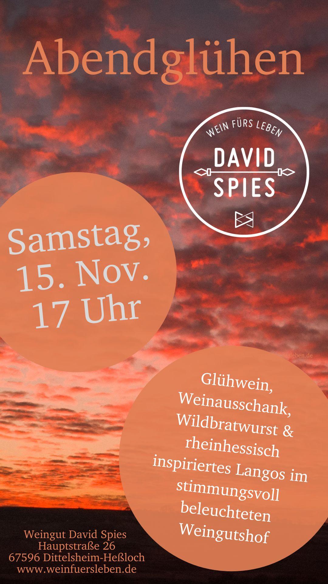 Die herbstlich verfärbten Bäume und Sträucher in unserem Weingutshof & eine stimmungsvolle Illumination ergeben eine magische Herbststimmung. Kulinarisch verwöhnen wir Sie mit Winzerglühwein und unseren Gutsweinen, Wildbratwurst aus der Region, rheinhessisch inspiriertem Langos und herbstlicher Kürbissuppe.